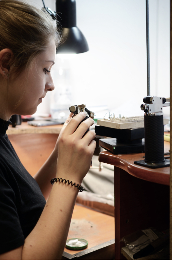 Consultation meeting, assistance of an experienced goldsmith throughout the workshop, design advices, all consumables, including silver. Tea / coffee / water / sweets